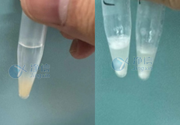 從研磨對(duì)比圖中,可清晰的看到蜱蟲被充分研磨,后續(xù)進(jìn)行離心,離心后分為三層,上層為水相,下層為有機(jī)相,中層是我們要提取的蛋白質(zhì)。