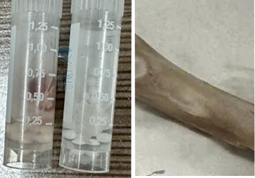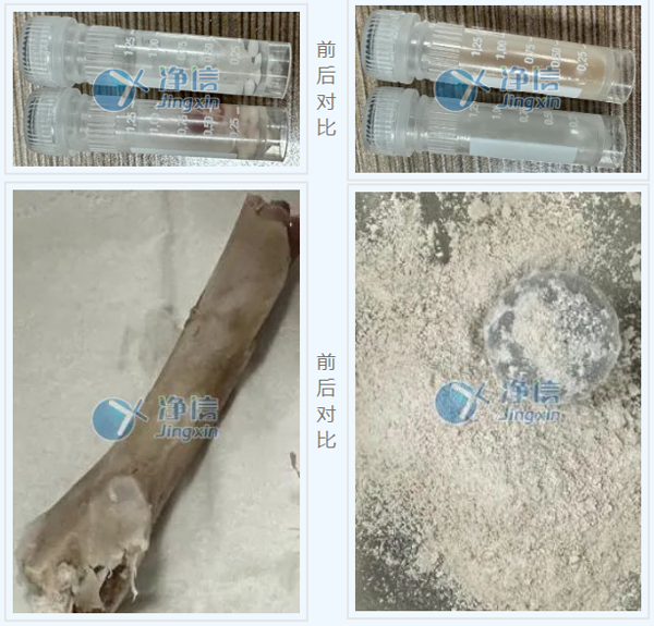與實(shí)驗(yàn)前對比,組織塊成均勻漿狀,骨頭呈細(xì)膩粉末狀。在生物提取實(shí)驗(yàn)中,我們需要對樣品進(jìn)行研磨,研磨的方式一般可分為干磨和濕磨,但無論哪一種方法,呈現(xiàn)的效果需要足夠均勻和細(xì)膩才能保證后續(xù)提取實(shí)驗(yàn)的成功率。本實(shí)驗(yàn)中的樣品均已達(dá)到實(shí)驗(yàn)要求,可用于后續(xù)提取實(shí)驗(yàn)。