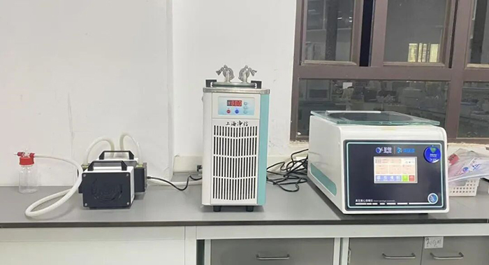1、 準備真空離心濃縮儀(JX-ZLN-E)一臺,配-50℃ JX-DWLJ-A +隔膜泵、250mL離心管4個,4孔的適配器一個,加入乙酸乙酯208克進行濃縮。