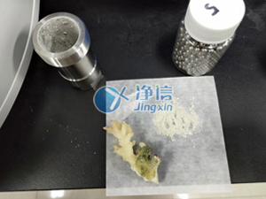 將海底珊瑚剪成小塊放入50毫升鋼罐中,加入專用研磨珠擰緊鋼罐后放入研磨機里,調整好參數(shù)待結束后即可得到實驗結果。