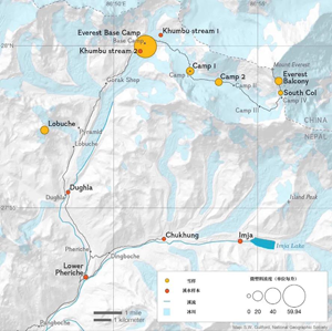 報(bào)道稱(chēng),“污染嚴(yán)重的樣本來(lái)自位于尼泊爾境內(nèi)的珠峰大本營(yíng),那里是珠峰上人類(lèi)活動(dòng)較集中的地方。每公升積雪含有79個(gè)微粒。取樣地點(diǎn)位于海拔8440米處,即位于珠峰峰頂下方408米處,該樣本中每公升積雪含有12個(gè)塑料微粒。在珠穆朗瑪峰上發(fā)現(xiàn)的微塑料大都源自合成纖維,包括聚酯纖維和丙烯酸纖維,系制作登山者衣服和裝備所用的材料?!?br/>