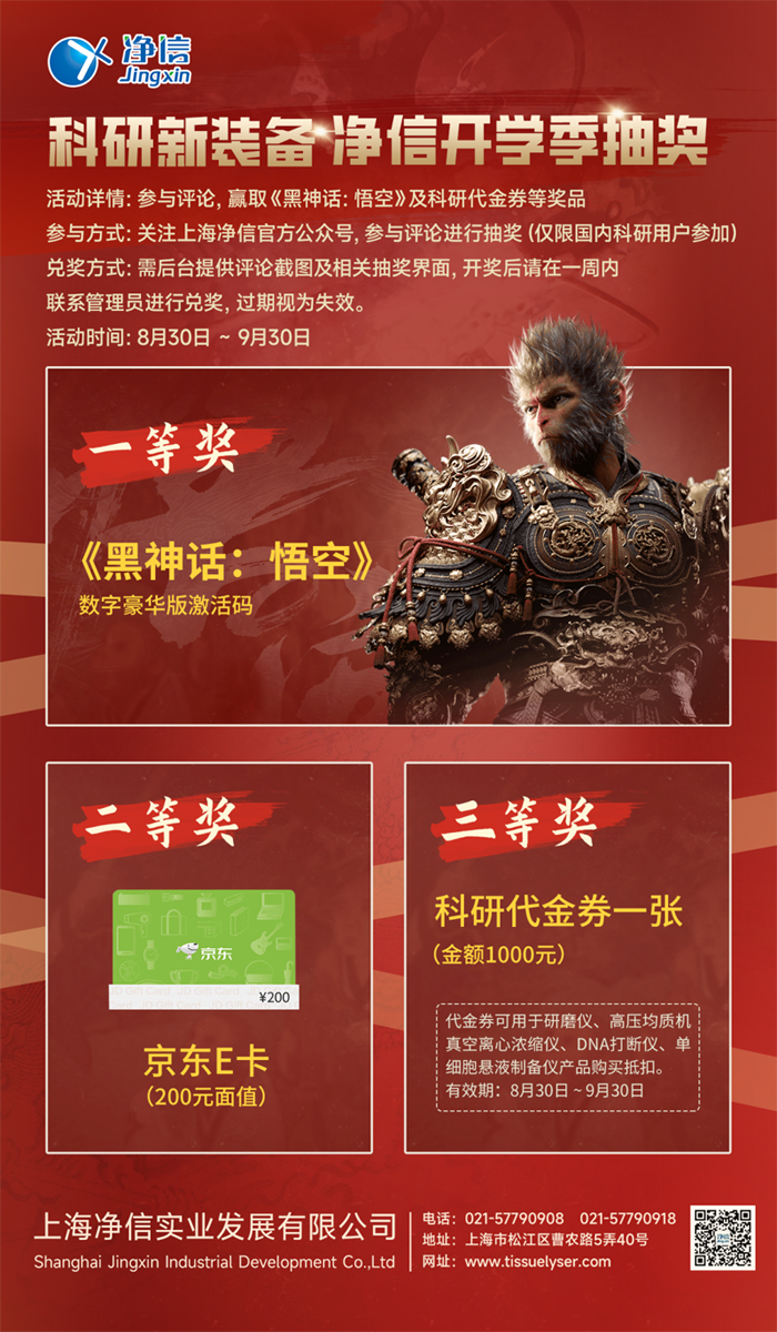 科研新裝備,凈信開學(xué)季抽獎!關(guān)注公眾號,參與評論,贏取《黑神話:悟空》、京東E卡、科研代金券等獎品