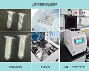 小麥樣品中提取DNA,之前采用研缽手工研磨的方法,在研缽內倒入液氮,在凍干狀態(tài)下快速研磨,研磨過程中葉脈不易研磨,整體研磨樣品不充分,影響實驗效果,因此選擇上海凈信多樣品組織研磨儀。