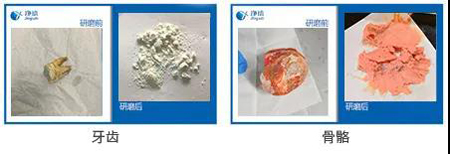 1、法醫(yī)骨骼牙齒粉碎儀對樣品的研磨實驗案例效果圖