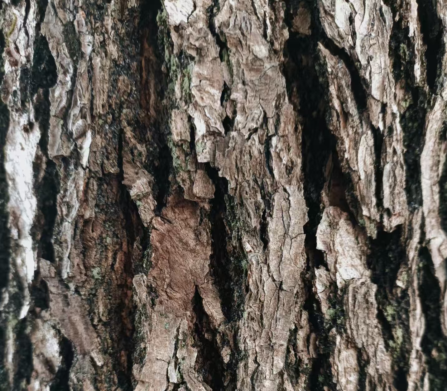 從實驗室院內(nèi)采集的新鮮樹皮,采集后未經(jīng)任何干燥處理,保持原始含水狀態(tài),表面可見明顯的濕潤光澤和柔軟纖維質(zhì)感。
