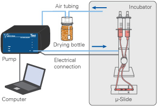 o流體裝置可以被放進培養(yǎng)箱,而ibidi泵在培養(yǎng)箱外