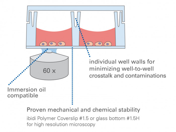 μ-Slide 8孔獨(dú)立高壁腔室載玻片: