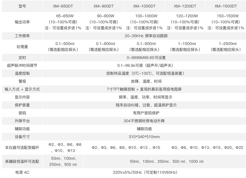 產(chǎn)品簡介:智能型一體式超聲波細(xì)胞破碎機(jī) XM-1200DT新一代的節(jié)能數(shù)字超聲電路,自動(dòng)追蹤頻率及自動(dòng)諧振點(diǎn)和功率控制,無需經(jīng)常手動(dòng)調(diào)節(jié)能量。設(shè)備具有超聲變幅桿自動(dòng)識(shí)別功能,更換不同尺寸的鈦合金變幅桿無需手動(dòng)調(diào)節(jié),儀器具有自動(dòng)識(shí)別功能;